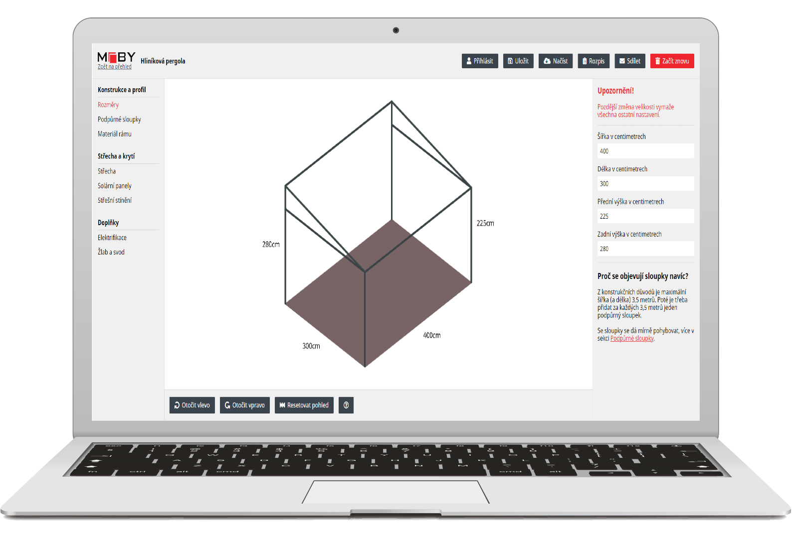 Ve 3D prostředí si můžete vyhrát s tím, jak chcete, aby Vaše pergola vypadala.