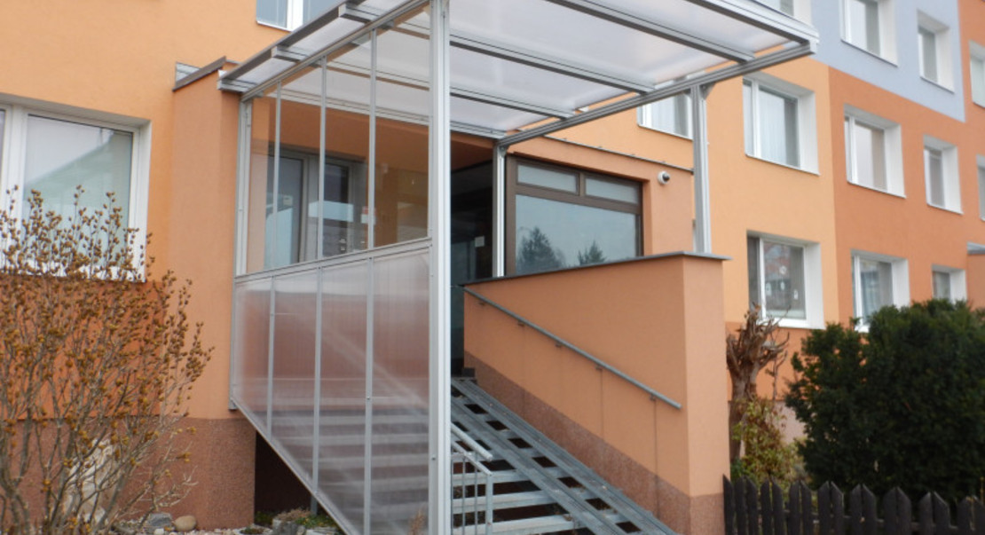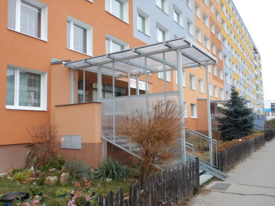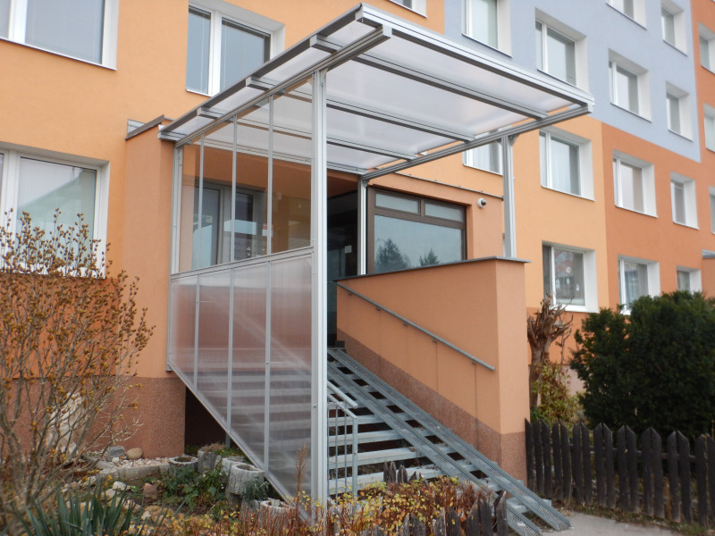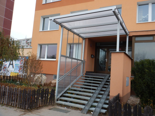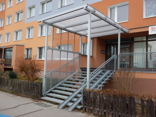 | Realizace | Zasklení a zastřešení venkovního schodiště a zádveří pro bytové družstvo |