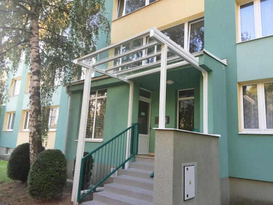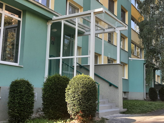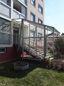 Vchodové stříšky, přístřešky a zastřešení schodiště chrání před deštěm, sněhem a větrem, zároveň doplňují architekturu bytového domu.